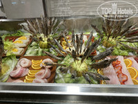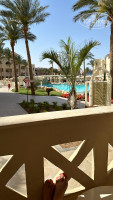 Еда. Как уже говорила, еда мне показалась перченой и перебор специй. Но то уж на вкус и цвет.. Меню изо дня в день не сильно разнообразное. Но это ведь и не пятерка. Всегда есть курица, и белая рыба. Говядина. Рыба в основном в кляре. Красную я не видела. А вот креветки через день-два. И кальмары тоже. Про клубнику - может не сезон. Была только в виде украшения пирожных. И были смузи (но их разбавляют водой). В нашем ресторане всегда были на завтрак свежевыжатые соки (апельсин, лайм, дыня и вроде еще что-то). Есть паста, готовят на любой вкус. Омлеты, яйца, картошка, рис (тоже разный).. бывает кус-кус. Каши овсяная и рисовая. Есть диетический стол. Есть детский стол (там детские столы стулья и тв с мультиками). Овощей большой выбор, как свежих, так и на пару и жареных, тушеных. Всего наверное не перечислю.. из напитков - 7ап, миринда, пепси, пепси диетическое, соки пакетированые ананас, яблоко, апельсин. Чай, кофе в автоматах (кстати в нашем ресторане автомат работает только на завтраке, в аквапарке - всегда). Алкоголь местный. Привыкнуть можно.. вода питьевая всегда везде в доступе.