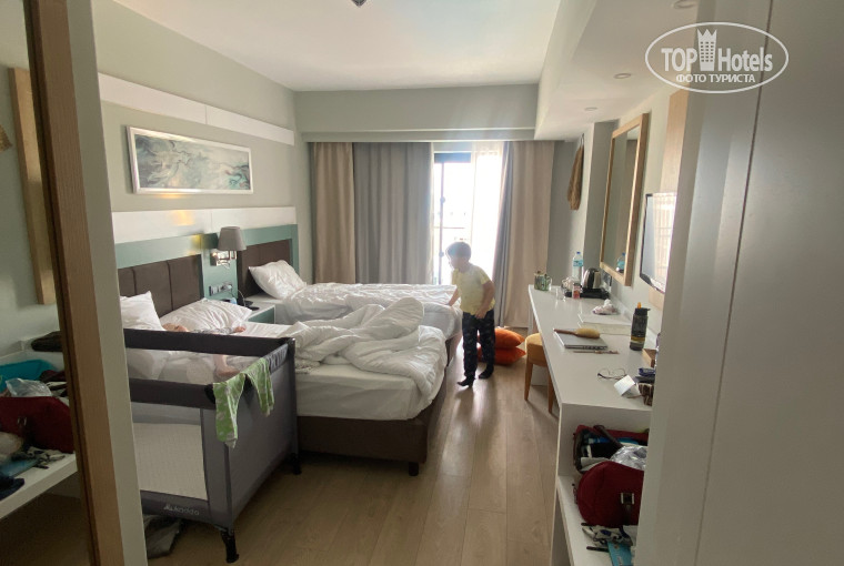 Номера маленькие, кровати тоже. Отдыхали втроем:я и двое детей (1 и 7 лет). В номере было две кровати односпальные. Был предложен манеж, но ребёнок не спит отдельно. Пришлось ютиться на узенькой односпальной кровати. Ну очень неудобно.