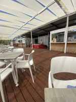Пляж хороший, не сказать, что отличный, но заход в море нормальный. Лежаков для начала сезона достаточно было. Не знаю, как будет в сезон, возможно, добавят лежаки. Но территория пляжа достаточно маленькая. Имеется бар, снек-бар. Можно заказать бургер, картофель фри, шаурму.