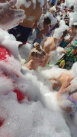 Бар на пляже- кофе как и из машины так и там делают, коктейли, вода, вино, пиво. С 10-18 дают мороженое ( достаточно неплохое). Пляж – твердая пятерка. Заход приятный. Бывают отливы, но все ровно плавать можно. На время отлива со стороны бара можно пройти по отмели и полюбоваться на крабов отшельников. Во время работы пляжа ходят официанты и приносят напитки. При чем охлажденные подаются в ведерках со льдом. Во время обеда на пляже можно покушать- паста, картошка фри и фрукты.