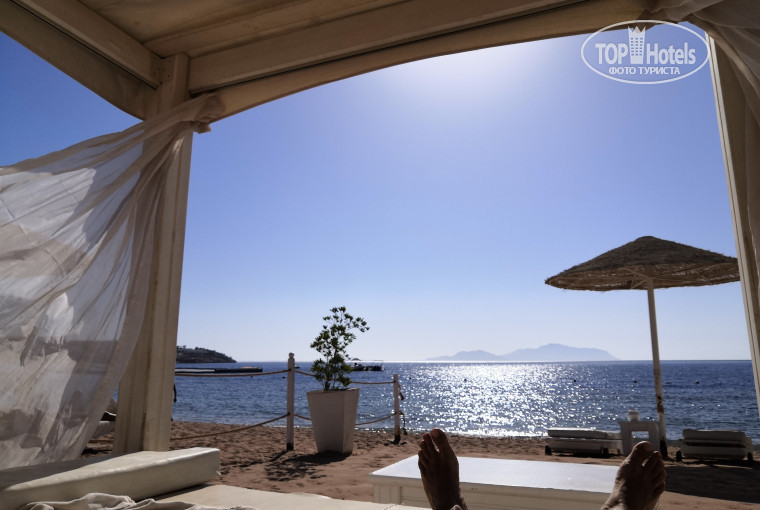Отель довольно необычный. Скажу честно первые впечатления у нас были не очень. Приехали вечером. Поселили нас где-то на отшибе, как нам в начале показалось – от моря далеко, темно, тихо. С утра пораньше мы отправились на море занимать места. На наше удивление на море было почти пусто. Мы решили прогуляться до самого дальнего ресторана, вернулись обратно на пляж и обнаружили, что несмотря на то что уже 9 утра на море почти никого нет и никто не спешит занимать шезлонги. Довольно голое побережье нас тоже поначалу расстроило. До этого мы всё время отдыхали на песчаных пляжах Хургады – не решались посетить коралловый берег Шарма с маленькими детьми. На пляже пообщались с одной из редких в это время дня туристов. Очень удивились, что она уже несколько раз приезжает в этот отель. Спросили почему она приезжает именно сюда, и ответ был довольно прост – ради красоты рифа.