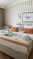 Интересный интерьер в номерах. Белоснежное пастельное. Меню подушек. Есть сервис подготовки номера ко сну, но мы не пользовались. Халаты по запросу, а так же зубные и бритвенные наборы. Мини бар пополняют ежедневно. Чай/кофе/сливки тоже приносят.