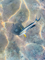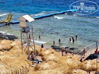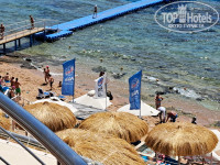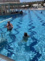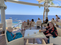 Мяса в отеле хватало, курица, говядина, рыба частенько была. Крабов маленьких один раз давали, так прикольненько. На улице постоянно что-то жарят. На ужин было время что мест не хватало, но можно определить это время и приходить чуть раньше или чуть позже. Персонал приветлив, услужлив. В отеле в основном русские, из Молдовы были, ещё какие-то иностранцы были, но сильно не обращал внимание. У моря несколько раз слышал украинскую речь, но прям редкость большая её сейчас услышать по сравнению с тем, что было раньше. Тихо, спокойно в отеле никаких конфликтов я не видел и не слышал. Питание похоже на турецкую четвёрку, До моря от рецепшена ходит автобус, минут 5 езды, но сесть в него можно по всему маршруту его следования, ровно как и выйти из него. До моря идти не очень далеко, просто с непривычки сначала кажется, что далеко и когда не знаешь, как наискосок пройти, а идёшь как едет автобус. Но мы предпочитали ездить. Просто как большинство русских назад идём в мокрых плавках/купальниках и лучше доехать на автобусе, чем потом мазаться кремом между ног. Тем более что туда с горы, а обратно в горку. В том отеле что возле моря инфраструктурой которого мы также можем пользоваться, конечно покрасивее и иностранцев там побольше. Я только бар на берегу посещал, с очень красивым видом на море, в ресторан не ходил и под баром не ел внизу. Поэтому ничего про питание в обед в этом отеле сказать не могу, но со слов других отдыхающих, в нашем Спорте разнообразнее обед. На море зонтиков и шезлонгов много, но все были заняты, когда мы до моря добирались (часам к 11), но мы не лежим у воды, поэтому куда-то примостили вещи и пошли купаться. Вода в море вполне тёплая, в районе 22 градусов, солёная и прозрачная. Темпаратура воздуха подбиралась к отметке в 30 градусов. Важная информация, т.к. уже получил от жены (она не умеет плавать) за выбор берега: купаться здесь тем, кто не умеет плавать в море невозможно! С берега вход в море ограничен буйками в районе колена (дальше плита с кораллами) иногда вода доходит до того начала откуда ноги растут, видимо из-за прилива и отлива и глубина меняется. Я пробовал «ползать у берега на животе» с маской, но дерзкие местные рыбы атакуют. Прям реально атакуют, просто бросаются на тебя, а потом в миллиметре сворачивают. Нет, ни разу не укусили или поцарапали и сначала это весело, а потом лезут всякие дурные мысли в голову, вдруг у них там какие-то шипы и неделю потом с температурой будешь валяться. Итог такой, что вначале мы позаходили по колено ножки помочить, но повоевав с рыбами, пытаясь их отогнать, ретировались. Рыбы психологически всегда выходили победителями. Поэтому кто умеет плавать идут по плавучему понтону и там уже купаются, но там метров 6 глубина и далее «голубая бездна». Но, красивый риф, рыбки и всё такое. Там основная масса людей и кучкуется. Во FRONTе бассейн с красивым видом на море, висела возле бассейна табличка температура воды 21 градус. Но в Спорте горки и он подогревается и просто кайф, когда ветер, а вода тёплая. Мелкова-то только в этих всех бассейнах, по-моему полтора метра везде глубина. По алкоголю, то нахрюкаться его предостаточно. Я коктейли пробовал или джин тоник гонял или виски кола. Иногда текилился, текила с солью по контуру бокала если не лень бармену сделать мне понравилась, быстро стукает в голову, да и без соли не хуже стука
