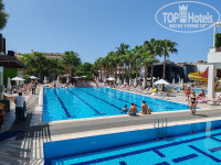 Территория маленькая, практически всё занимают бассейны.