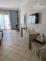 Прилетели в 22.00. Ужин уже закончился. По нашей просьбе ужин принесли нам в номер. Все отлично: три тарелки с мясом, сыром, овощами, булочками. Сам номер нам не понравился. Был рядом с ресепшен на втором этаже, с видом на водопад и на зону гриль, где на ужине готовят еду. Для ребенка привезли кровать в виде каталки. Ладно, переночевали, утром отправились менять номер. Подошли к Аеду. Объяснили, что у них 5*отель и дочь 9 лет не может спать на такой кровати. Да, понятно, что у них такие стандартные номера, но мы платили за троих и нам хотелось для всех нормальные кровати, а не то, что предлагают. Аед предложил трехместный номер с тремя отдельными кроватями. Мы посмотрели, номер большой 50кв.м, три большие кровати. Расположен напротив футбольного поля, самый близкий к пляжу на первом этаже. Видимо были свободные номера, поэтому без доплат нас по доброте душевной переселили. Как уже было описано в других отзывах, номера так себе, на троечку, явно пятизвездочным отелем не пахнет. Вызывали мастеров поменять лампочки, заменить батарейки на пульте, исправить кондиционер, принести весы, в последнюю ночь даже взламывали сейф, так как батарейка села, а нам уже улетать. Персонал приходил в течение пяти минут.