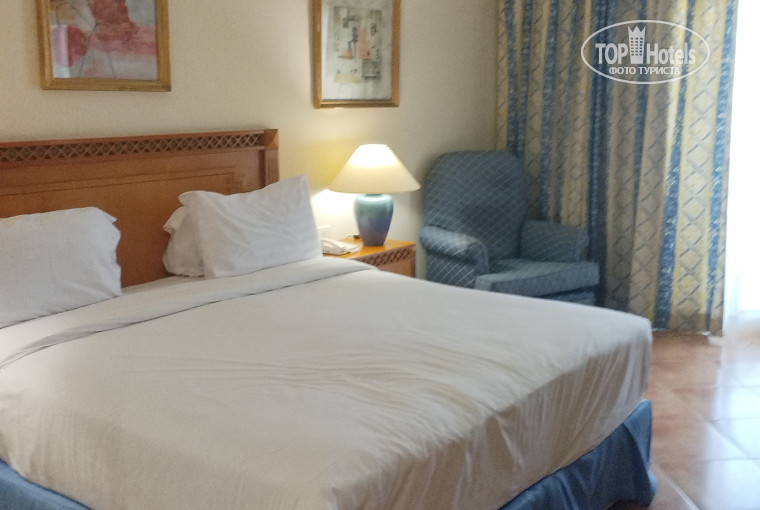Кстати, справа от ресепшен находится столик с двумя всё знающими красотками, с замечательными девушками Катей и Викой. Они помогут в решении любого вопроса: как и где разменять доллары, как записаться в ресторан, где купить недорогие лекарства – всё подробно расскажут и покажут. По поводу питания и комнат – читайте в отзывах ниже, там всё подробно написано, всё достаточно достоверно. Еда вкусная, за 10 дней пребывания лишний вес был успешно нами набран) Хотел отметить отельный Wi-Fi, отличный приём на всей территории отеля, и в номере, и на пляже – везде уверенный сильный сигнал. Небольшой совет для тех, кто планирует поездку в этот отель: в номере нет сушилки, поэтому веревочка, взятая с собой заранее, поможет решить проблему с сушкой купальников.
