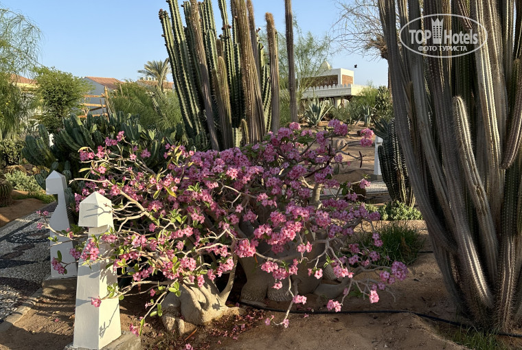 Территория: большая,ухоженная.Большое спасибо садовникам,которые целыми днями и вечерами ухаживают за территорией и растениями.Это большой труд! Была в других отелях,там территория хоть и меньше но значительно менее ухоженная. Очень приятно гулять по дорожкам,любоваться садом кактусов,деревьями и кустарниками. Единственное,хотелось бы что бы руководители отеля организовали таблички с названиями растений и страной происхождения ( было бы очень интересно, тем более в саду кактусов).