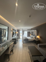 Нам улучшили категорию номера, номер был со свежим ремонтом, кровать+ диван, 2 телевизора, бар пополнялся ежедневно водой, открытый балкон - без вида