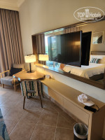В номер заселили, как и бронировали и питание у нас было полупансион. В ванной гель для душа, шампунь, кондиционер для волос, лосьон для тела. Биде, гигиенический душ. Мало пополняли шапочек для душа и ватных дисков. Мыло вообще был кусочек при заселении, потом пришлось конкретно просить, как и туалетную бумагу. Полотенец при заселении было на двоих, а с нами ещё был ребёнок, сразу же попросили горничную третье полотенце и в дальнейшем она всегда нам оставляла три полотенца. Вода была нам положена только в номере или ресторане. В барах не давали. Горничную попросили вместо 4 бутылок 6, так она нам потом всегда 10-12 бутылок по 0.5 оставляла👍. Кофе, сухие сливки, чай так же были в номере. Тапки, халаты, весы, гладильная доска и утюг, только проблема включить этот утюг, шнур у него короткий. Света тоже хватало. Матрас для меня был твердоват, а подушки хиловаты. Сушилки на балконе маловато, какая то жердочка. Места не хватало. Еще интересная деревяная ключ-карта для открытия дверей, обычно пластиковые.