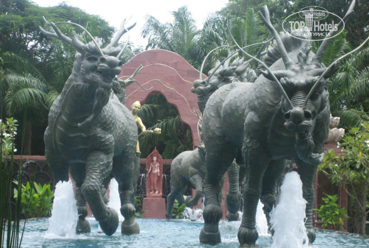 Отель очень красивый, перед входом находятся огромные статуи...