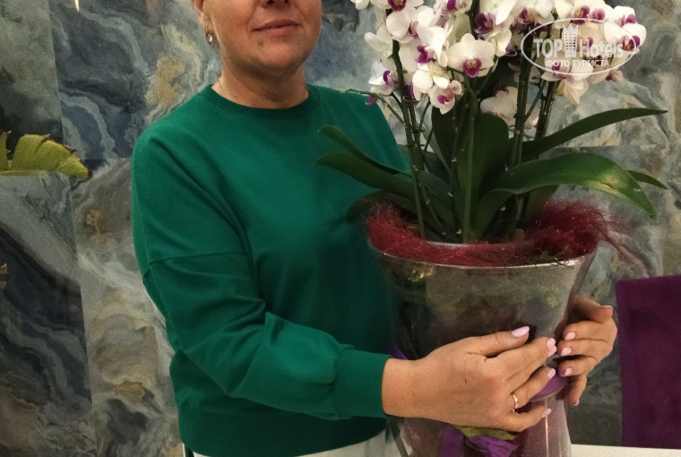 Приехала в отель до 9 утра (точное время не помню). Весь персонал доброжелательные и вежливые, отдала документы сотруднику ресепшена Елдыс (заранее извиняюсь, если имена не верно пишу), мне одели браслет и отправили на завтрак. Вернувшись с завтрака, пошли смотреть номера (я не просила раньше заселить!), дали возможность выбрать (для меня было важно, чтоб кондиционер был не шумный и окна выходили не на амфитеатр). Для меня важна тишина. Ву аля, я уже в номере 2410 в 9 утра, разложила вещи, стала радоваться жизни! В номере: вода 0,5л. 2 бут., две односпальные кровати (которые я сдвинула), раскладывающееся кресло, тумбочки, пуфик, столик, телевизор, холодильник, кондиционер, сейф, одеяла с пододеяльникам, все комплекты полотенец на двоих, тапочки, в санузле - в бутылочках шампунь, гель для тела, мыло в дозаторе и в упаковках, ватные диски, ушные палочки, набор для шитья, фен. Никакой плесени нет, все работает как надо. Уборщицу пустила только 1 раз, чтоб протерла пол, у меня всегда был порядок.