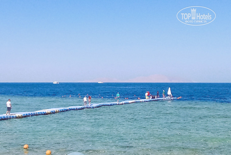у берега коралловый риф. Но есть небольшой участок у берега без кораллов , огороженный буйками,