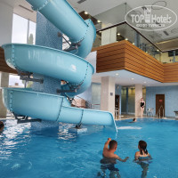 В основном корпусе бассейн закрытый, бассейн открытый и сауны. Есть горка. Там понравилось все.