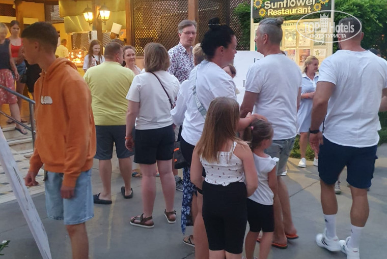 4.Отношение персонала/сервис.Сразу чувствуется отношение ,как к «людям второго сорта».В столовой наш стол практически все официанты игнорировали пока у нас не валились грязные тарелки.Никогда не улыбнуться ни скажут ни доброе утро/день/вечер даже hello единицы говорили.При том что немцев и англичан они обхаживали.Аниматоры ни разу не подошли ни спросили нравится ли нам все?В баре на пляже есть особенно злобный бармен которому даже жалко колы налить…Работники ресепшена хорошо относились к нам.Если Вам нравится такое к себе отношение ,то Вам тут возможно понравится.