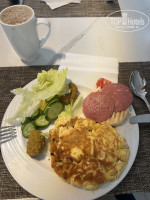 На завтрак всевозможные виды яиц, вафли, сэндвичи, овощи, сыр-колбаса, булки, несколько горячих блюд, сосиски, фалафель, хлопья, фрукты, йогурты, круассаны, булочки, пироги. Кофе только американо.