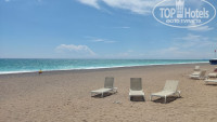 Пляж песчаный, но на входе галька...лучше брать с собой тапки-коралки.