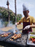 День пятый. На пирс пришли два мальчика с пассатижами и стали вешать фонарики, которые должны бы были висеть к открытию, 1 мая. Что-то не заладилось, мальчики ушли. Через час вернулись и таки повесили освещение. Во всем отеле пропало электричество. То есть совсем во всём. Абсолютно. В санузлах темнота, кухня не работает, вай-фай - а он, на секундочку, очень сильно платный - тоже не работает. Конечно, скорее всего совпадение, но мысли не заткнешь... К чести шефа, вышли из положения очень красиво. Вытащили к бару возле пляжа мангал и нажарили шашлыков, отбивных, кебабов и просто овощей на гриле. Подогнали гарниры, сготовленные заранее, салаты и десерты. Получился внеплановый пикник-шашлыки. Всем понравилось. К ужину все починили. Мальчиков с пассатижами больше никто не видел. Ну мысли-то не заткнешь, вы помните, вот и думалось: кого мы ели на ужин?)))