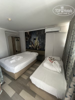 В отель мы прибыли к 10часам,на ресепшен попросили заселить по возможности.Сразу заселили в номер третьего корпуса на второй этаж.Номер просто жуткий, в ванной в зеркало за дверью пролезть может только ребёнок, колонна около кровати…вообще слов нет))Холодильник стоит одиноко и розеток в зоне видимости нет.Мебель старая.Вода горячая была и это +!На следующий день мы попросили поменять номер и нам предложили с видом на море первый этаж.Намного лучше, номер светлый , ванная большая.Питание однообразное , но мы любим овощи потому хватало.Основные достоинства:Пляж в 2 минутах от номера ,чистый спа центр.Мы с удовольствием посетили спа процедуры пилинг и 9 сеансов массажа.Я приезжаю в Турцию 2 раза в год,делаю массаж в зависимости от профессионализма массажиста.Тут сразу скажу ребята молодцы!Массажист Якуп очень грамотно подобрал технику массажа.В общем этот отель вытягивает расположение , близость к морю и спа комплекс.Однозначно буду рекомендовать тем кто предпочитает тихий отдых и восстановление здоровья.
