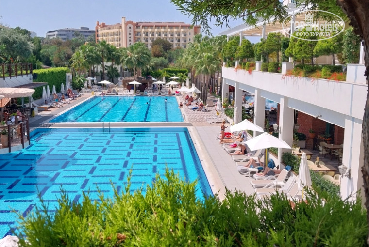 Об отеле: территория не прям большая, бассейнов много. Пальмы. Аквапарк небольшой - 5 горок. Внутри очень уютно. Картины, мебель, уголок с книгами. Вот какие-то мелочи, но они придают такой уют! Милота!