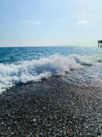 7. Пляж. Лежаки хорошие, море чистое, красивое. Но заход обрывистый. С маленькими детьми, наверное, будет проблематично. Также рекомендую специальную обувь, т.к. при входе в море галька.