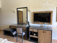 + НОМЕР - номер Де люкс в основном здании - это черный браслет с привилегиями, нужно брать номера ближе к морю дальit от ресепшн, после 250, более ли менее тихо в коридоре. В самом номере относительно старые кровати и мебель просто морально устаревшая, подушки и одеяла с матрасом очень не удобные, простыни с катушками застиранные много раз, в целом конечно ничего не разломано, много зеркал , не работают розетки и кое где освещение но могут починить по требованию, двери ветхие, номер можно поменять по запросу, сантехника в основном старая, но работающая. + 10 евро в день и номер с ремонтом, но он не сильно отличается.