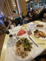 Завтраки: яичница, омлет, блинчики, горбуша соленая филе, оливки, маслины, сыры, много сыров моцарелла, копченые, соленые, колбаса, грибы, сосиски, отварные овощи, каши, супы, картошка фри, йогурты, свежая выпечка, сухие завтраки куча, пастила, рахат лукум, посыпки всех цветов радуги, яблоки, апельсины, бананы, персики...