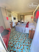 Стандартный номер, не маленький, 1318-1. На 4х у нас была 1 двуспальная кровать, 1 односпальная и диванчик полноценный, где спал один ребенок (белье предоставили). Состояние номера хорошее, не новый, но и не ущербный. Все работало - сантехника, кондер, телек, холодильник. Бесплатно в номере напитки и вода ежедневно пополнялась, сейф, чайник с кофе и чаем, фен, полотенца для всех мест. Уборка в номере была, но не знаю сколько раз, каждый ли день. У нас не было грязно, чтобы заметить разницу, но в номере находили свежие полотенца, туалетную бумагу, воду и пустые мусорки. Вполне устраивало, чаевые не оставляли.