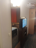Номер семейный, на пятом этаже. Но чтобы доехать на лифте, необходимо в самом лифте приложить ключ от номера к считывателю, только после этого кнопки лифта активируются и можно нажимать нужный этаж. Как обычно сразу при входе начал делать фотографии номера, после установки электронного ключа в гнездо свет загорелся во всех комнатах и туалетах, и даже реклама на телевизоре включилась, отфотографировав весь номер, я решил выключить эту иллюминацию, но не успев протянуть руку к выключателю, как мысль материализовалась, и свет во номере потух. В кромешной тьме, кое как на ощупь добрались до входной двери, пошевелили ключ - не алё. Пришлось звонить на рецепцию. Через пару минут подошёл молодой человек и предложил сменить номер на соседний. Когда молодой человек пошел за ключами, обратил внимание на пластиковую панель вверху, которая явно часто вынималась, как оказалось впоследствии была выломана, так как не у нас одних происходило подобное с электричеством. По факту выбило автомат. В причинах не стал разбираться, так как уже хотелось просто лечь и отдохнуть с дороги, поэтому включил его и свет в номере появился.