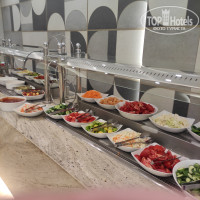 Питание в отеле реально достойное, ежедневно были рыба, курица, мясо, овощи, большой выбор сладостей, из фруктов постоянно были персики, дыня, арбузы, апельсины, финики. Если сравнивать с Турцией, с отелями такой же ценовой категорией, этот отель в плане питания значительно выигрывает. В прошлом году мне пришлось отдыхать в Турции (Бельдиби), поверьте, есть с чем сравнить. Хочу отметить, что во время обеда и ужина шеф-повар лично контролирует ситуацию с питанием, кстати блюда более "заточены" под европейцев, нет местных сильно выраженных приправ, от вкуса и запаха которых на третий день не знаешь куда деться, все вкусно и достойно. Молодцы ребята работающие в зале, приветливые, улыбающиеся...быстро все убирают со столов, столы, тарелки и приборы чистые...приятно! Что касается спиртного, я не пью подобный алкоголь и его качество оценить не могу. Но посетители были недовольны порциями налитого пойла, алкоголь наливается в маленькие стаканчики....в том числе и пиво, которое в добавок еще постоянно теплое, я взял на пробу один раз и отказался от него на период отпуска.