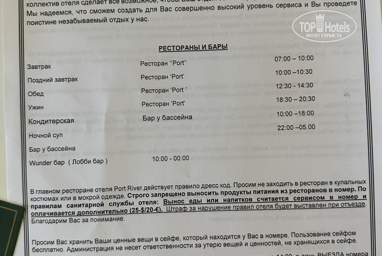 Оценка сервисов отеля автором