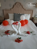 Уборка номеров проводится с высочайшим качеством. Горничные тщательно следят за чистотой и порядком. Обеспечивают ежедневное обновление полотенец и всего необходимого. Белье меняют раз в три дня. Нам делали красивые фигурки из полотенец и шариков. Очень приятно. Спасибо.