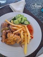 Есть бар для перекусов около бассейна (по меню) можно съесть пиццу,бургер или салатик. Народа практически нет,поэтому все приносят быстро.