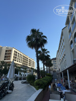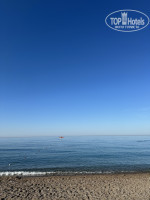 Заселившись, мы сразу пошли на пляж. Отель не на первой линии, но идти до пляжа минут 7-10 по хорошей пешеходной дорожке, наслаждаясь цветущими кустарниками и хвойными деревьями. Кто с детьми и колясками, не знаю как вам будет, но нас этот момент не напрягал, хорошая прогулка для сжигания калорий. Есть автобус до пляжа, но мы им ни разу не пользовались. Пляж большой, на два отеля, лежаки надо занимать утром, часам к 10 уже из свободных только лежаки на самом солнце. На пляже народу много, полностью занят. Заход в море песчано-галечный, вполне комфортный. В море плавают рыбы, и они кусаются, это неприятно. Бар на пляже открывается в 10 и закрывается в 17 часов, а вот снек бар вообще не понятно по какому режиму работает. Наблюдала каждый день, открывается в разное время и закрывается тоже. В целом выходит, что он открывается около 12 и закрывается около 16. На пляже пекли гезлеме, примерно с 10 часов. И нарезали арбузы, тоже каждый день по-разному- то в 10, то в 11, то в 12. Графика работы этого снек бара мы нигде не нашли.