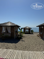 Пляж песчаный с галечным входом в море, на пирсе есть бар, что очень удобно. Мы снимали павильон на пляже - прекрасный сервис, отличное место для отдыха на весь день, стоит от 65€
