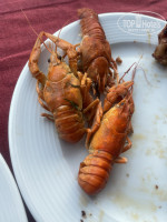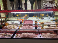 Свежая рыбка форель, мясо, курица в разных видах и много, хватало всем. Приходили к середине обеда/ужина - все жарится при вас - очень вкусно.