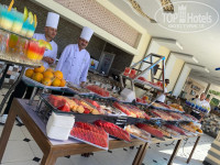 Попали в сказку на 10 дней)Начну по порядку.Мы прилетели 6 июня в обед.Нас сразу заселили в двухкомнатный номер без всяких доплат.Номер очень просторный,две комнаты это было очень удобно,так как нас было двое взрослых и двое детей (7 лет и полгодика ).Сами понимаете все по своим комнатам распределились)Мы пошли смотреть море.Пляж очень классный,каждый найдет свое место.Там небольшая лагуна и открытое море.Красота!Потом мы пошли ужинать и был как раз четверг,у них проходил тематический ужин.На улице пели песни и танцевали восточные танцы.А еще на улице жарили люля-кебаб,утку запекали,кукурузу.У детей был праздник,раздавали попкорн.Вообще в этом отеле очень разнообразные ужины.Завтраки и обеды попроще,но это во многих отелях так.С 11 до 17 работают снек бары,там тоже можно вкусно поесть.Много баров на территории отеля.Большое количество бассейнов и здоровский аквапарк .Очень удобные шезлонги и возле бассейна и на пляже.Везде есть туалетные комнаты их постоянно убирают.Зеленая территория,здесь явно хорошо поработал ландшафтный дизайнер.Постоянно уборка территории. И каждый день убирали номер,делали различные фигурки.Дети были в восторге. Анимация ненавязчивая .Ребята с утра приглашали на зарядку,рассказывали программу на вечер.Старались-молодцы.Вообще отель очень компактный все удобно расположено.Персонал очень вежливый.Впервые такое встречаю в Египте,ребята👍С утра подходила менеджер Ольга,спрашивала как Вам отдыхается,есть ли вопросы.Нам очень понравился отель еще сюда обязательно вернемся.В качестве пожеланий,хочется чтоб в отеле появились весы для багажа, на данный момент очень актуально)
