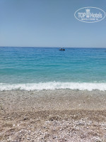 До пляжа недалеко, минут 5-8 ходьбы, лежаки и зонтики в этом сезоне серьёзно подорожали, по 200 лир за каждый. Вход в море крупная галька, лучше иметь аквашузы, кроксы тоже подойдут.