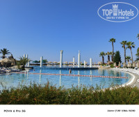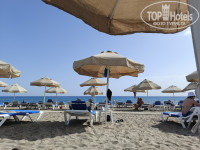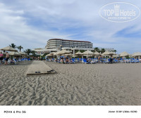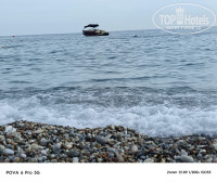 Бассейнов прям много, мы старались побывать во всех, и вроде получилось, не считая платных). Бассейн с колоннами возле пляжа был нашим любимым, каждый вечер после моря проводили там. Потрясающий вид открывается с верхнего бассейна для взрослых, к моему сожалению он был 16+, дочку туда не пустили, так что мы только разок там и побывали. Ну и бассейны со слоном и возле Санрайза, в которых бары прям в бассейне, тоже вполне приятные. Погода была жаркой во время нашего отдыха, вода в бассейнах была прям тёплая, особенно к вечеру. В море вода попрохладней, но тоже вполне можно было купаться. Море было спокойное, лежаков на пляже всегда хватало, единственное - не очень удобно заходить и, особенно, выходить из моря, там мелкая галька, которая налипает на ноги, а дальше полоса более крупных камней, и с этой налипшей галькой идти по ним прям больно, пока не дойдешь уже до песка. Многие ходят в специальной обуви. По дороге к пляжу несколько ларечков с фруктами, кофе, хот-догами, венскими вафлями, мороженым - очень было кстати, всегда брала там стаканчик капучино).