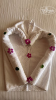 Номер . Я заплатила за вид на море и раннее заселение . Номер самый лучший , если любите общение . Рядом будка спасателей и аниматоров. На пляж ходили в купальниках и без полотенец, поплавали и обратно . Лежаки возле бассейна не занимали, тусовались только на своей террасе. Уборка и смена полотенец по запросу . Косметика, халаты, тапочки , утюг- все есть . Из за покрытия в санузле босиком не походишь , там годовая грязь .