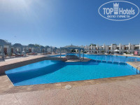 На самом деле территория не большая, от забора до забора метров 500. Бассейн всегда со свободными лежаками. Детская площадка, spa, мед.центр, 2 рыбных ресторана, волейбольная площадка. Территория облагорожена только в центральной части, при въезде неработающий фонтан, вдоль забора и между корпусами разбитые дорожки. Работы по благоустройству ведутся.