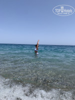 До пляжа идти 10 минут неспешным шагом, дорога не утомляет, шезлонгов хватало всем (июнь), в дневное время на пляже вообще пустота. Вход галечный-не совсем удобно ходить по гальке, но мы без тапок. Рядом пирс, можно в маске посмотреть на рыбок, море чистейшее и освежает. На пляже работают бар от отеля: безалкогольные напитки, и по времени фрукты и сэндвичи.