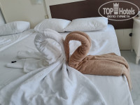 Сегодня только вернулись из этого отеля. Заселили нас быстро, т.к. приехали мы около 5 утра (можно сказать, что потеряли целый день отдыха). Номер нам достался на 5 этаже с чудесным видом с балкона (с одной стороны видно море, с другой горы, по центру бассейн). Сам номер простой, небольшой, относительно чистый. Мебель целая, фен, телевизор, сейф и мини бар в номере (который периодически забывали обновлять), вай-фай ловит прекрасно на всей территории отеля и на пляже. Кондиционер у нас в номере работал нормально, придраться не могу.