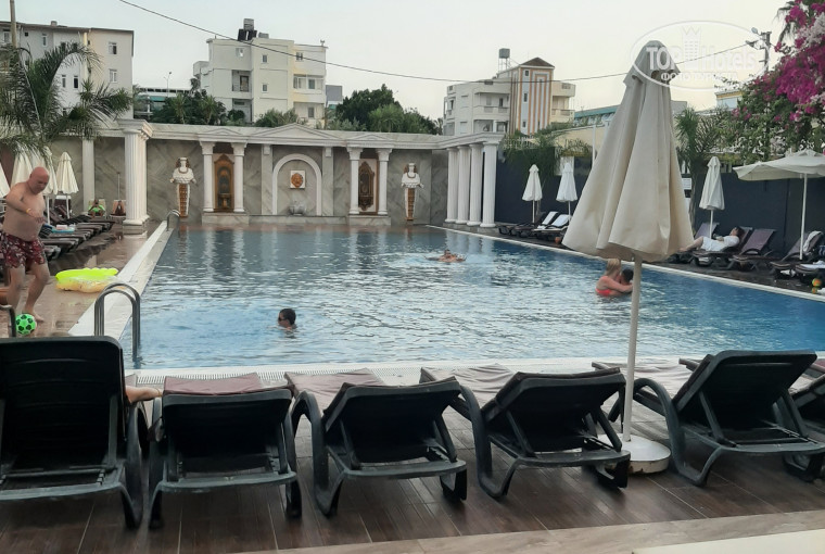 Добрый день! Я отдыхала с ребенком 7-ми лет. Отель в хорошей транспортной зоне. Уехать до Антик Сиде и до Манавгата не составит труда. Автобусы ходят каждые 5 минут. Рядом большое кол-во магазинов и кафе с товарами, начиная от зубной пасты, заканчивая сумками. Есть рядом и пункт обмена валюты. Сам отель маленький, уютный, далеко не надо ходить с чемоданами. Бассейн отличный, общий, но отделена детская зона глубиной 25 см, в ней можно просто поплескаться. Кормили вкусно, порадовало разнообразие блюд, тем более, для 3*. Но есть один большой МИНУС: к морю спускаться нужно по асфальтированной дороге между 2-умя крупными 5-ками минут 15 примерно. Трансфера никакого. А потом подниматься тяжеловато. НО - МОРЕ дивное, пляж песок, замечательный песок. Подьем в гору после пляжа как фитнес - вполне приемлимо. И еще нет никакой детской анимации, вечером вроде с детьми кто-то из сотрудников танцевал, но это не считается. Вообще это твердая, хорошая 3*. Хамам в отеле есть.