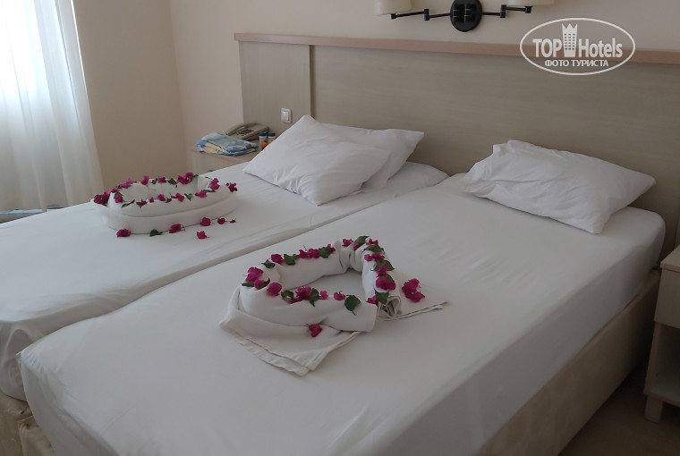 Путёвок не покупали , гуляли , ходили на рынок , в аптеку и Мигрос . Гуляя заходили в соседние отели для сравнения . Решили , что от добра добра не ищут . Если поедем в этот регион ещё раз , то только в этот отель ! Цена и качество соответствуют ! Чуть дороговато для 3 *, но я уверен , что такого сервиса , питания и пляжа в другом месте не найти .