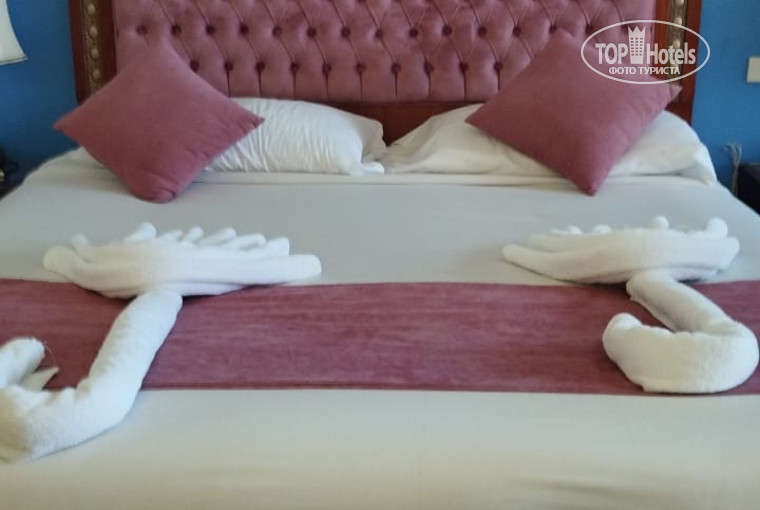 Отдыхали с 28 июня по 4 июля две семьи с детьми. Приехали в 17-30 на ресепшене быстро оформили и проводили в номера. При заселении в номер нам сразу принесли дополнительную кровать для ребенка. В номере было чисто, кондиционер работал, Комаров и муравьев в номере не было, каждый день убирали номер и делали красивые фигурки из полотенец. В знак благодарности оставляли либо шоколадку, либо Доллор. Питание разнообразное, завтрак, обед и ужин. На ужин на гриле готовили вкусные люля кебаб, пиццу. В обед давали мороженное на баре возле бассейна. До пляжа добирались на предоставляемом мини автобусе, ждать его не приходилось. Пляж чистый, лежаки всегда были свободные. Бар на пляже открывался в 11-30, днем можно было покушать пиццу и картошку фри. С пирса можно было рассмотреть множество красивых рыб. Аквапарк детям очень понравился, почти все горки работали. Бассейны работали до 18-30, потом их обрабатывали хлоркой. Не далеко от отеля есть магазин Джорд Клуни, хороший магазин по приятным ценам. Персонал отеля приветливые, почти все могли разговаривать по русски. Отдельное спасибо Самиру за красивый номер с видом на бассейн. Отдых удался , рекомендую этот отель!!!