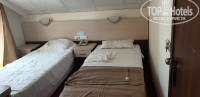 отдыхала одна неделю в данном отеле в конце июня. Отель полностью в своём сервисе на твёрдую троечку, номерной фонд и сам отель не новый, номера требуют ремонта давно.Приехали в отель поздно вечером в районе 10.00 часов. Заселили быстро, но не нашли в это время хоть какой то поздний ужин.Меня поселили на седьмой этаж, стандартный номер напоминал мансардный тип. Номер маленький, стояли две одноместные кровати, причём я жила одна, мне было тесно. Относительно к двери выхода все впритык, свободного пространства нет.