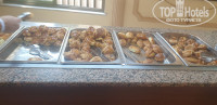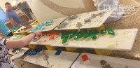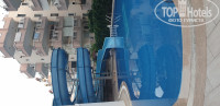 На обед один вид рыбы, курица тушёная, рис и макароны и суп пюре рисовые..на ужин почти все тоже самое что на обед плюс шла десертная выпечка.фрукты- арбухз, цельное яблоко, дыня и иногда абрикосы. На территории отеля расположены два небольших бассейна, на одном бассейне есть горка для детей.вода в бассейне сильно хлорированная.