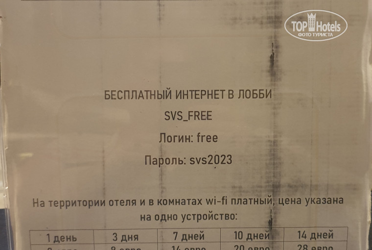 А в комнате ЕСТЬ помещение гардеробного стиля, в котором на полу стоит сейф, пуфик и в стене труба для нескольких вешалок, Отсутствует шкаф для одежды и нет ширмы отделяющей спальную зону. Ванная комната в отеле, в общем то, хорошая, мне понравилось, душевая кабинка исправно работает, фен встроенный, душевые принадбежности пополнялись ( гель, шампунь, мыло и туалетная бумага). На раковине отсутствовал стакан для зубной щётки. На входной дверью расположен кондиционер - он работал и постоянно тек. Каждый день вызывала техника для устранения течи.За семь дней пребывания в отеле постельное белье и полотенце ни разу не поменяли.Спасло то, что у меня изначально было 2 комплекта, на одном из полотенец были пятна загрязнения.При покупке тура стояла концепция, что полотенца на пляж должны были выдавать отдельно, однако при заезде нам сказали, что полотенца на пляж отелем не выдаются. В номере на тумбочке стоит табличка оповещение, что если при выезде из номера отеля какого-то одного полотенца не досчитаются, то будет занесён на баланс туриста штраф в десять евро.Уборщица заглядывала 2 раза с предложением уборки номера, но не смены белья. Один раз пополнила набор гелей и мыла.Вай фай и интернет подключение к сети ловила только на рецепшен.соединение проходило без проблем.Для соединения в номере отеля с интернетом -платная услуга, мне не требовалось.на телевизоре одна программа на русском языке. Относительно шумоизоляции номера -сам номер с видом на оживленную улицу, поэтому звукоизоляция, в общем то, никакая.