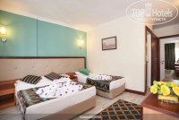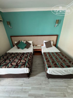 Номер 12 квадратов, мы измерили программой в телефоне. Хотя отель заявляет 24. Я с мамой спала на полуторо-спальной кровати, сестра на односпальной. Кондиционер никак не регулировался и дул кому то на спальное место. Либо дует либо выключен, спите как хотите. 1 стул пришлось выкинуть на балкон, чтобы хотя бы в 2ем перемещаться по номеру. в сан узле вообще только 1 человек. Номер у нас был из старого фонда, они просто положили на ободраные поверхности типа мраморные плитки и вуаля, шик шок. Сан узел вообще исключает хранение чего то. мыльно рыльное, шампуни - бальзамы, некуда поставить. Сам отель выдал при заселении ватные палочки, шапочку, мыло и наверное шампунь был налит в емкости прикрученные к стене. Качество и состав думаю сомнительного качества, берите все с собой. Уборка номера была, пол вроде даже мыли несколько раз в неделю, полотенца ходили сами меняли у этой женщины, постельное не менялось за 2 недели ни разу. А самый прикол, что ключик от номера подходит не только к нашему номеру. Мама как то этаж перепутала, зашла, а там мужские тапки какие то стоят и наших вещей нет. И к нам как то кто-то ломился в 3 часа ночи, слышно что дверь сама щелкнула, но хорошо мы на задвижку закрывались.