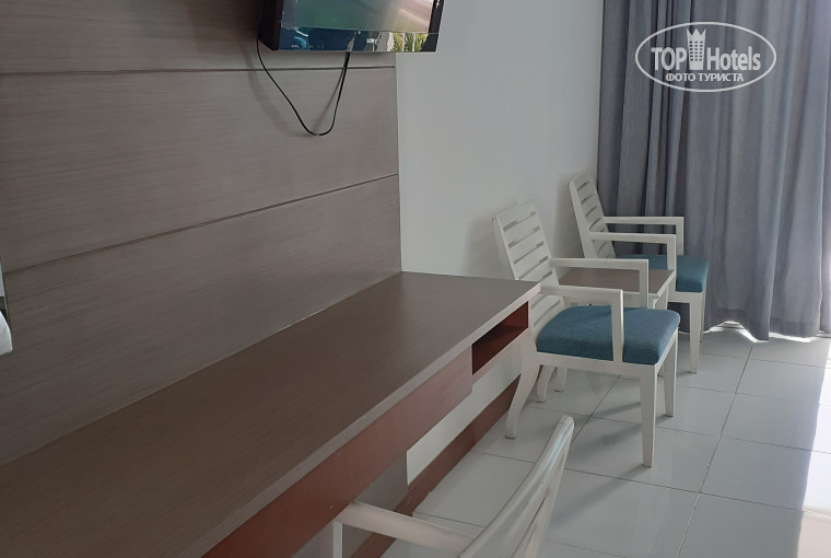 Всем добрый день. Отдыхали с друзьями в данном отеле. Заселение прошло нормально, взяли депозит 100 долларов. Дали номер на 5 этаже, вид на море с балкона. Номер на троих, одна большая кровать и 1 полуторная. Постель белоснежная, полотенца тоже, минибар. Санузел чистый. Единственный минус, плохой смыв унитаза. Вызывали сантехника. Уборка каждый день, выдавали 3 бутылки воды, часто давали 2, приходилось напоминать. Питание отличное: 2 вида супа,сухие завтраки, соки, нарезки, лапша, рис, омлет, яйца, булочки, круассаны, 2 кофемашины, чай, вкуснейшие фрукты (манго, арбуз, дыня, ананас, папайя), овощи (огурцы, помидоры, салат, лук, зелень), 2 вида йогуртов. Особо порадовала территория отеля. Вокруг прекрасный тропический сад с рыбками, в вольерах 5 птиц, 1 попугай Ара, который умеет танцевать под музыку , рядом с ним черношейный скворец, который умеет подпевать и позволяет себя погладить😀. Вокруг 3 бассейна, есть комары, пляж не достаточно чистый, море мутное, есть медузы и морские ежи. Ездили на остров Ко Лан, на военный пляж, вода чистейшая и белый песок. А так же посетили деревню слонов и столицу Бангкок. Рядом с отелем 2 массажных салона, массажи понравились. Единственное, что было неприятно, что при отъезде из отеля с нас взяли штраф в 100 бат. На вопрос за что? Долго искали причину. В итоге сказали, что за испачканное полотенце. Не было сил что-то доказывать....